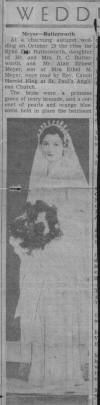 Newspaper Cutting Reporting on the wedding of Sybil Ena Butterworth to Alan Ernest Meyer (Part 1) |