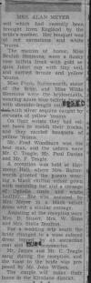 Newspaper Cutting Reporting on the wedding of Sybil Ena Butterworth to Alan Ernest Meyer (Part 2) |