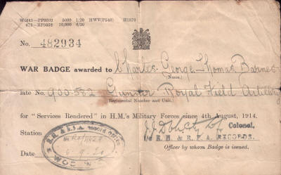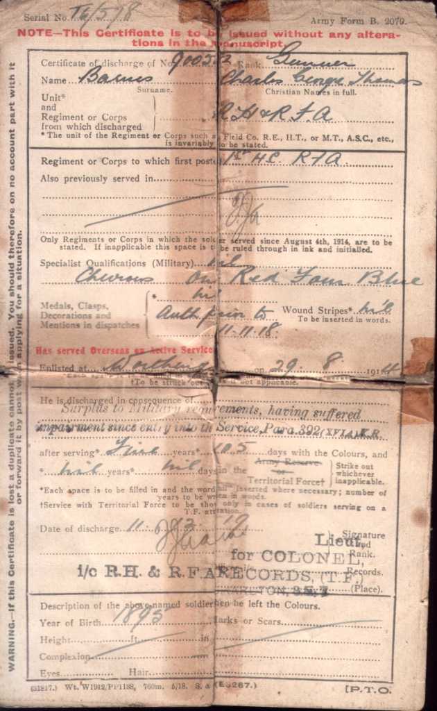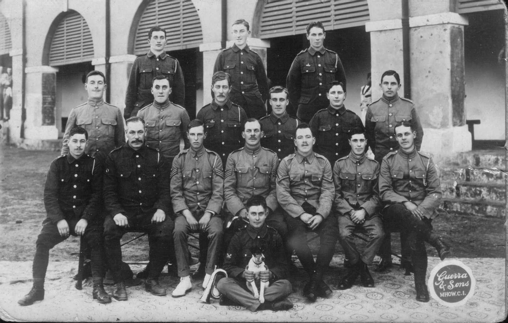 Photograph of D Sub 2nd SX Battery Charles Barnes is in the second to back row, fourth from the left Muhow, India 1915