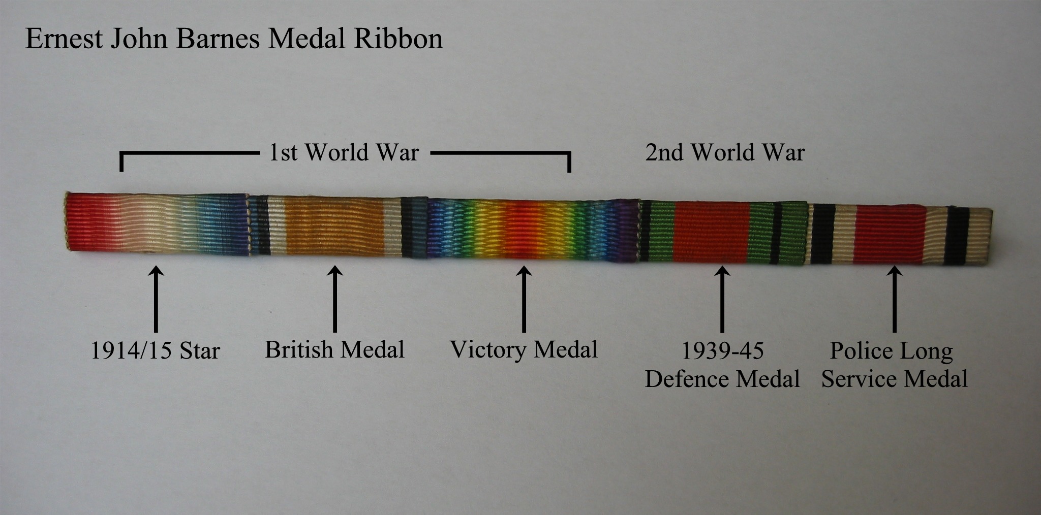 The medal ribbon of Ernest John Barnes (my grandfather), the 1914/15
