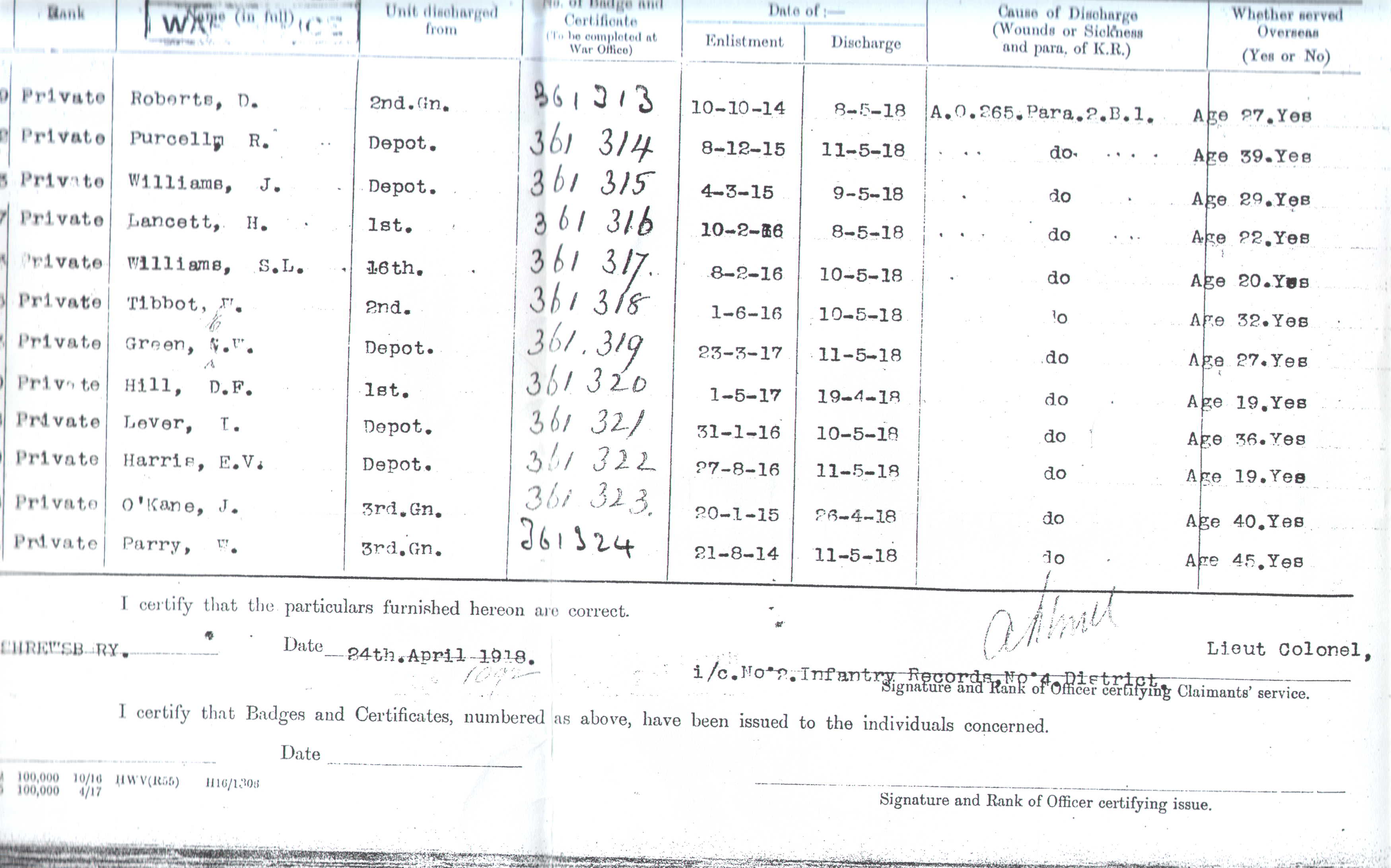last solider on the page a Private W Parry, who enlisted on the 21st