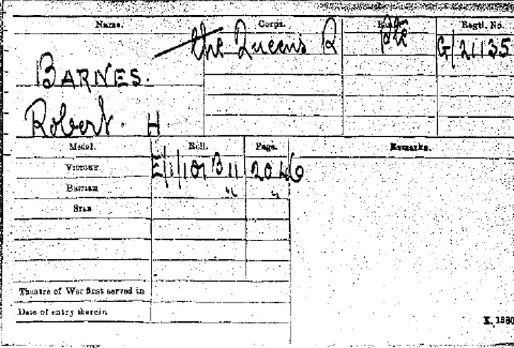 Robert H Barnes was a private in the Queen's Regiment with the service