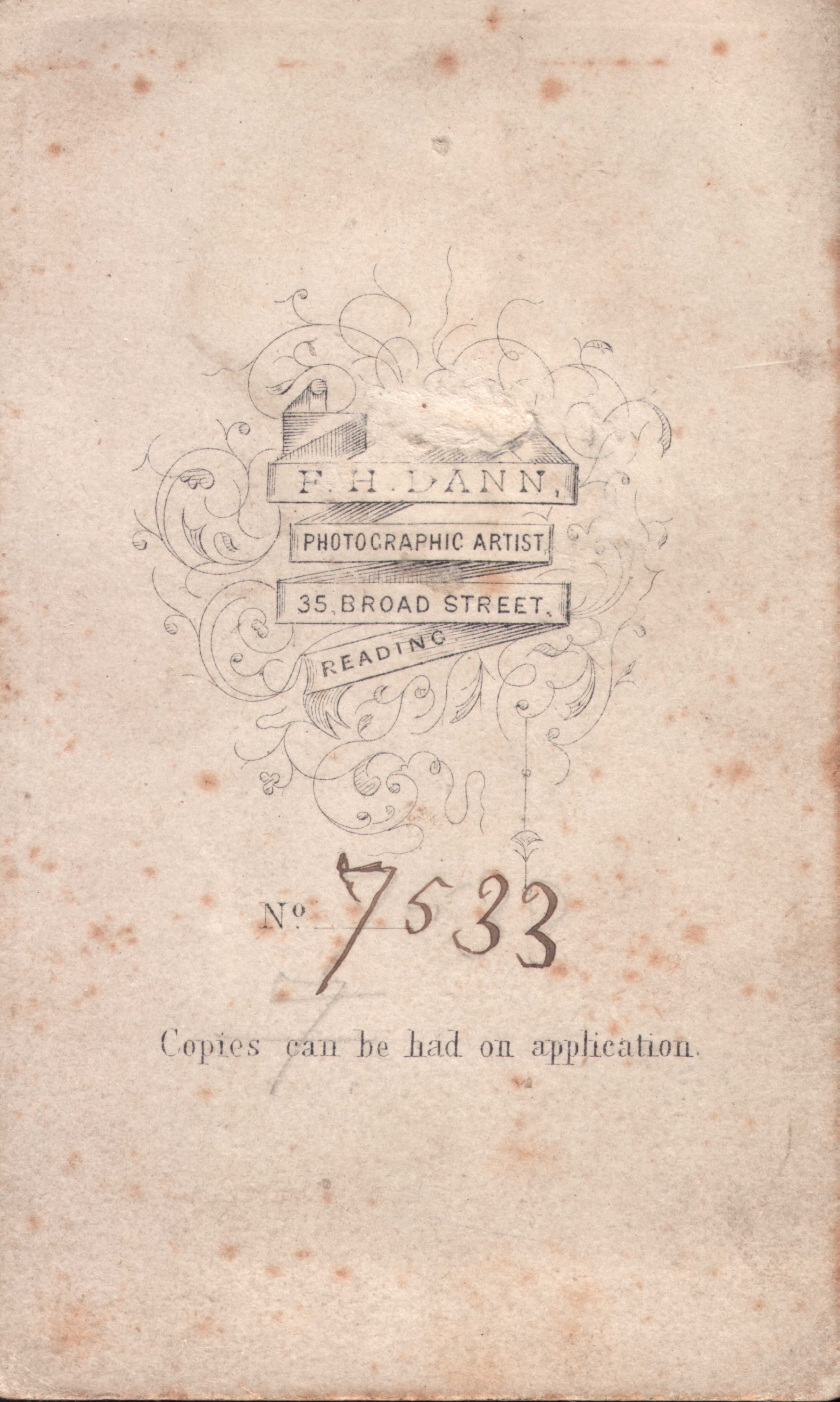 The photographer Francis Dann can be found on the 1861 and 1891 census