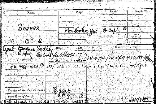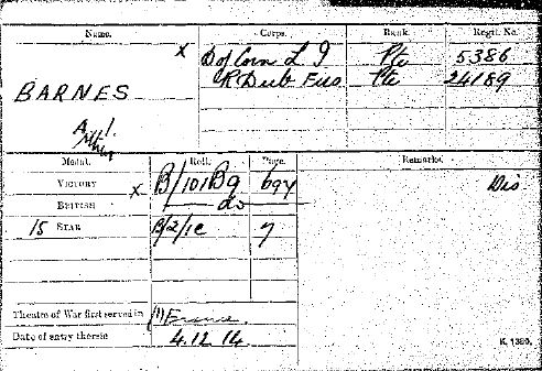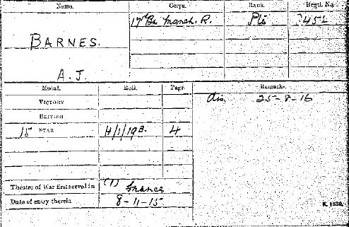 Barnes must have enlisted in early 1916 (four digit service number) and