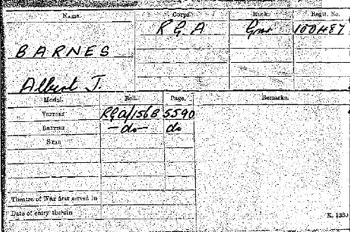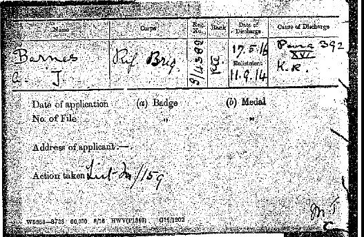 BARNES A J. Rifle Brigade. Enlisted 11th