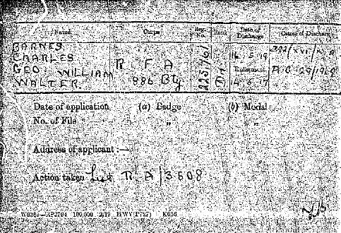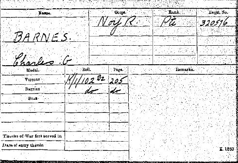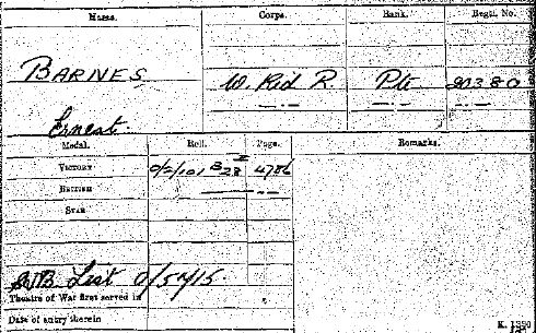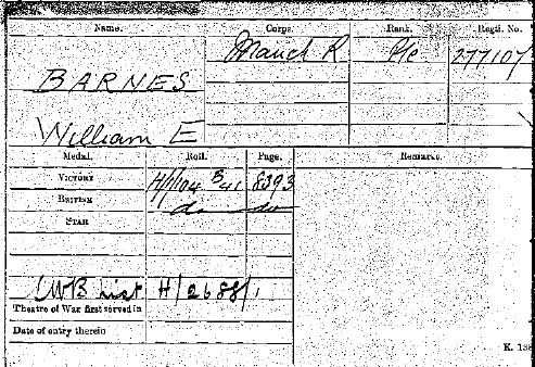 | BARNES WILLIAM E. Private 277107. Awarded the Silver War