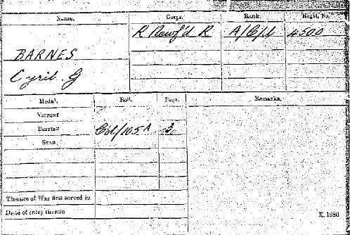| BARNES CYRIL G. A/Cpl 4500. Acting Corporal