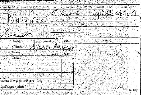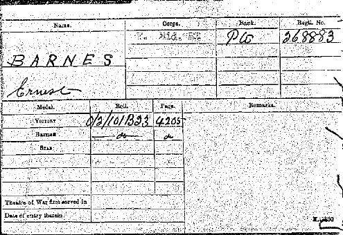 | BARNES ERNEST. Private 268883. Most likely enlisted late