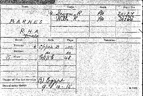 | BARNES REGINALD H A. Private 20127 Devonshire Regiment.