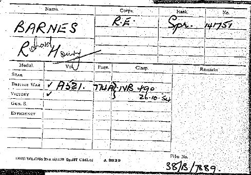 BARNES ROBERT HENRY. Royal Engineers. Sapper 141751. |
