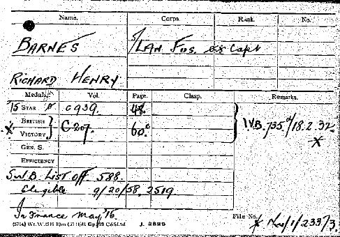 | BARNES RICHARD HENRY. Lancashire Fusiliers, Captain.