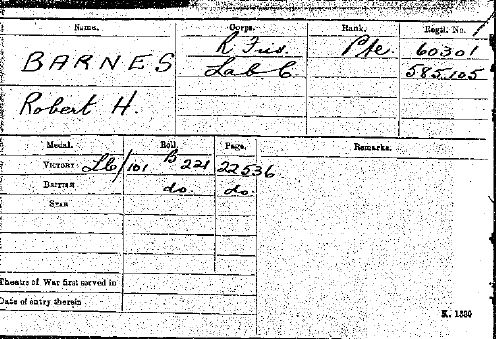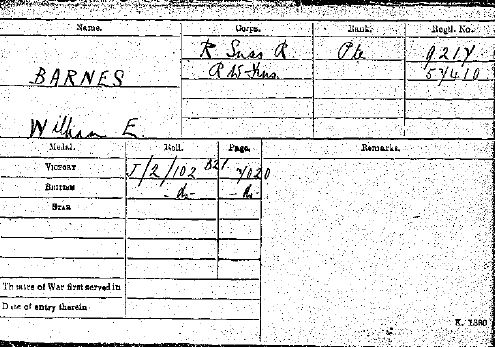 BARNES WILLIAM E. Private 13077. Kings Royal Rifle