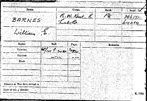 BARNES WILLIAM E/ Private 266592. Royal West Kents and