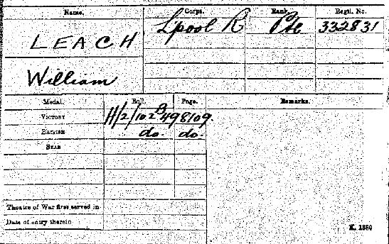 LEACH WILLIAM. Private 332831. Liverpool Regiment.