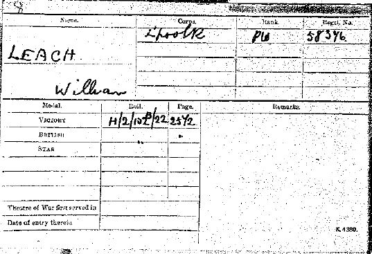 | LEACH WILLIAM. Private 33278. Liverpool Regiment and