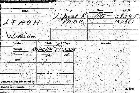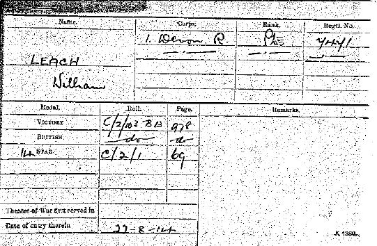 | LEACH WILLIAM. Private 7471. Served overseas from 22nd